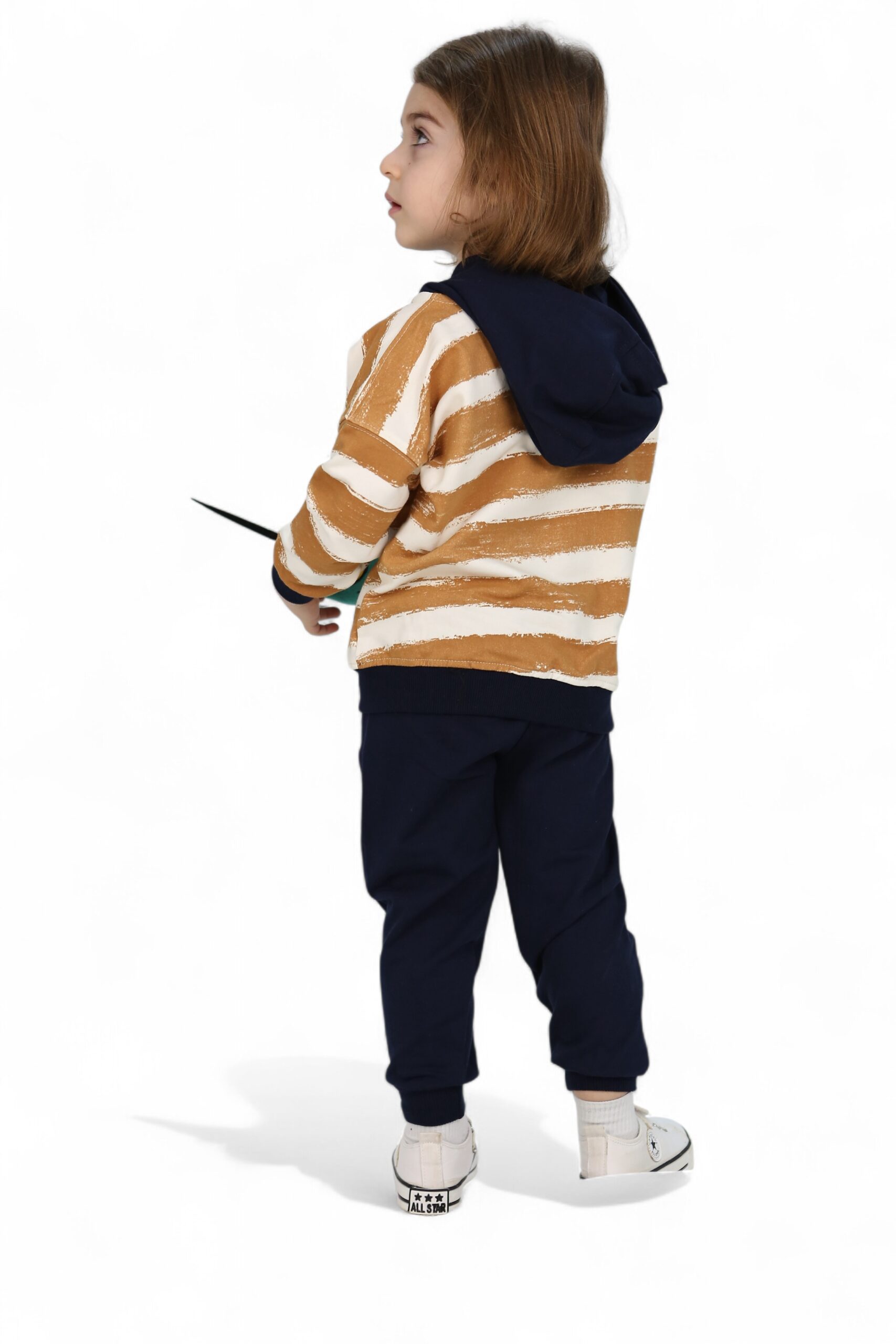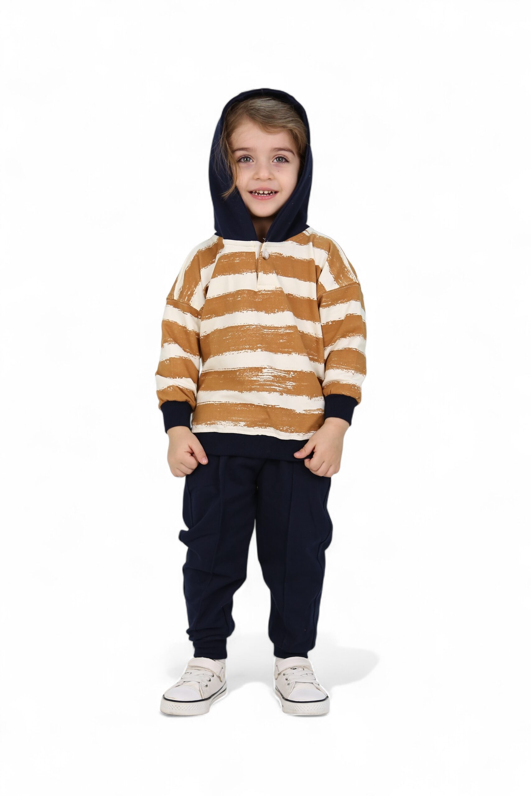 این محصول از زیرمجموعهی Duki Lite طراحی شده و ترکیب هودی چاپی به رنگ زرد مایل به عسلی با شلوار سرمهای، جذابیت و راحتی را در کنار هم فراهم کرده است.